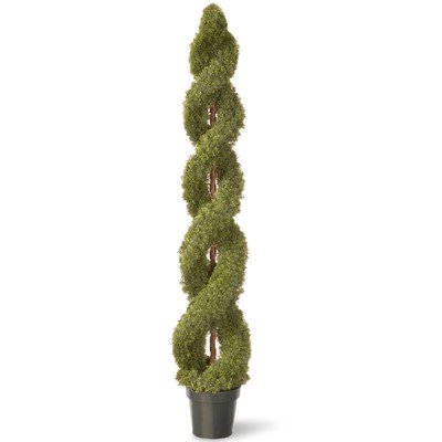This 48-inch double cedar spiral tree comes in a 9-inch round green plastic pot.. It can be used indoors or outdoors. It requires no watering or sunlight and it is resistant to animals and insects.