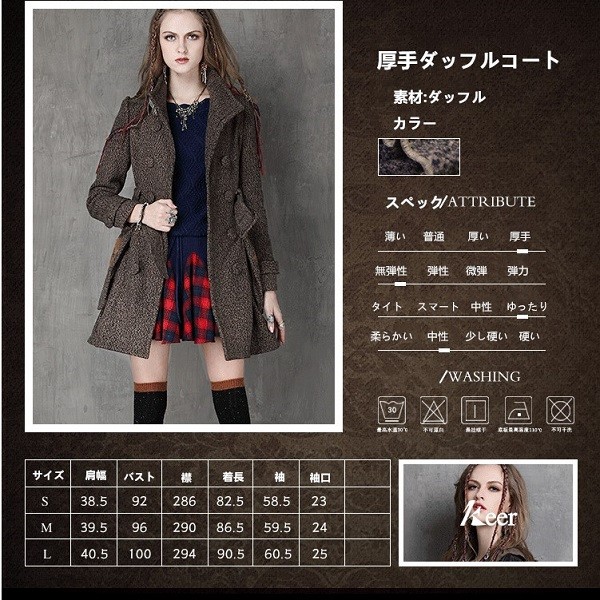 フィット&フレアでワンピースを着られるウールワンピースコートです。シンプルなデザインのスタンドカラーコート。余計なものを省いたシンプルさや、フレアーシルエットがより大人可愛い雰囲気を出しています。シンプルなデザインはカジュアルから綺麗目まで幅広くコーディネート出来ます。メイン素材:ポリエステルサイズ★ S(cm) 着丈82.5バスト92袖丈58.5肩幅38.5★ M(cm) 着丈86.5バスト96袖丈59.5肩幅39.5★ L(cm) 着丈90.5バスト100袖丈60.5肩幅40.5
