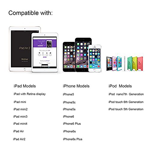 [Using for] Compatible with iPhone 6 iPhone 6 Plus,iPhone 6s iPhone 6s Plus,iPhone5, 5c, 5s, iPad Air, iPad with Retina Display, iPad mini, iPod Touch 5th gen, and iPod Nano 7th gen