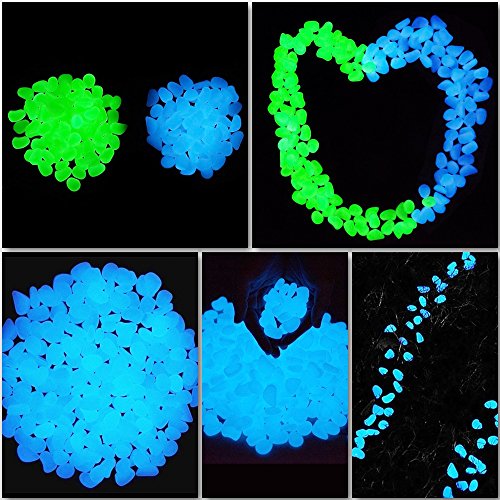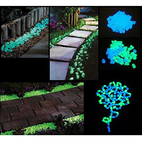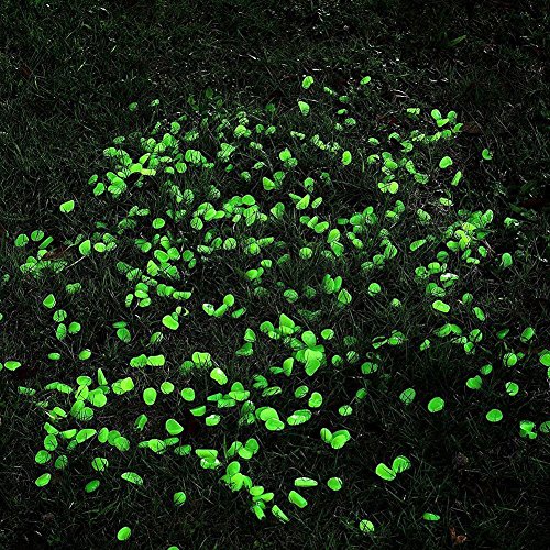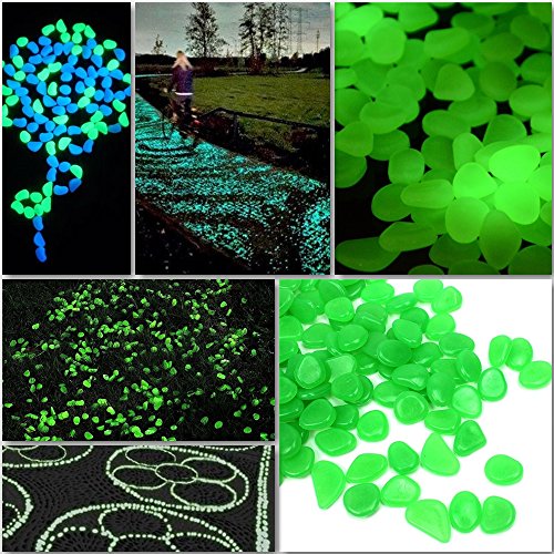 - Approximately 200piece set of non-toxic glowing resin stones per bag. These pebbles absorb sunlight during the day and light up at night.Spread the pebble on the pathway, edge the flower bed, dotted with little fluorescent light.
