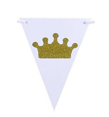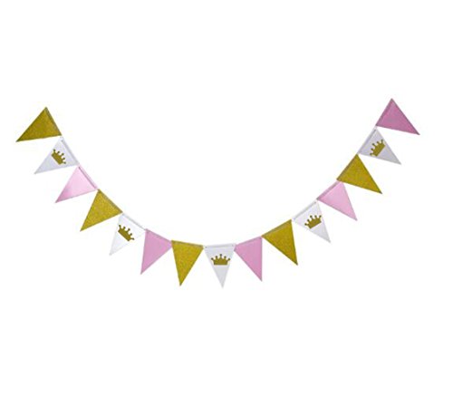 Glitter Crown Gold and Pink 10 Feet Vintage Style Pennant Banner Paper Triangle Flags Bunting for Wedding, Baby Shower, Event & Party Supplies, 15pcs Flags