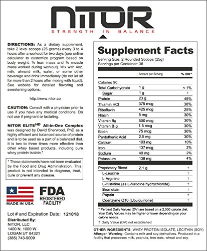 -. Title : Whey Protein Isolate Powder Complex - 36 servings (2 lb) Natural and Unflavored by NiTOR Elite HD