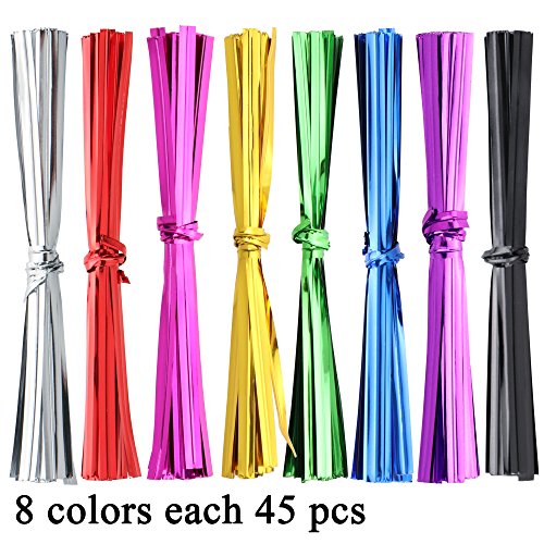 - Multicolored twist ties: 8 various colors, red, rose red, green, purple, blue, black, gold and silver, 45pieces each color, 360 pieces in total, beautify your wrapping