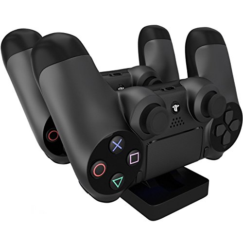 -. Binding : Video Game -. Brand : HDE -. EAN : 0700355881483 -. Feature : DUAL CHARGING: Store and charge two wireless Dualshock 4 controllers in the docking station at the same time or individually to keep you're gaming going without the need for batteries / EASY & CONVENIENT: Light indicator will notify you when the controller is charging or is fully charged with an estimated charge time of 2 hours / STURDY: Rubberized feet will stabilize the stand and securely hold controllers in place without loss of connection to the charger / POWER: Power through the USB port from either the PS4, PC, or USB wall charger | 5V output with 200 to 400 mAH / STYLE: Compliments your PS4 with the same matte and gloss finish -. HardwarePlatform : playstation_4 -. IsEligibleForTradeIn : 1 -. Label : HDE -. Manufacturer : HDE -. MPN : HDE-49083 -. PackageQuantity : 1 -. PartNumber : HDE-49083 -. Platform : PlayStation / PlayStation 4 -. ProductGroup : Video Games -. ProductTypeName : VIDEO_GAME_ACCESSORIES -. Publisher : HDE -. Studio : HDE -. Title : HDE Playstation Dualshock 4 Controller Charging Stand Dock Dual Micro USB Charge Station for PS4 Game Controllers -. UPC : 700355881483