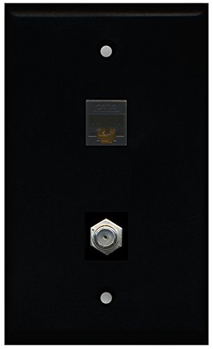 RiteAV - Black 1 Port Coax Cable TV- F-Type 1 Port Cat6 Ethernet Black Wall Plate