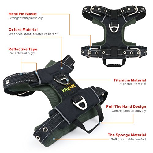 Studio : Idepet Publisher : Idepet Binding : Misc. Product Description Idepet Dog Front Range No-Pull Vest Harness Idepet front range no-pull dog harness provides a more comfortable alternative to collars and prevents injuries to the neck,spine and windpipe.3 sturdy metal leash attachment points reinforced with webbing(1 D-Ring on the chest to stop dog pulling for more control,and 2 D-Rings on the back for more relaxed walks).Easy control for small medium large dogs while training,walking,hiking NO SLIPING,NO ESCAPING Unlike other brands' harness with adjustable strap buckle which will be loose in using and increase the risk of dog slipping and escaping from the harness,Idepet adjustable dog harness uses pin buckle design to ensure your dog safety and creates a custom fit for your dog. HIGH QUALITY AND SAFETY DESIGN Made of stylish,durable,scratch-resistant oxford material outer layer.Breathable and comfortable lightweight mesh lining with soft sponge padding in chest and belly.Reflective straps ensure your dog's safety while out for a walk.With a sturdy handle on the back,you can control your dog directly by your hand. EASY TO PUT ON OR TAKE OFF Easy on easy off design makes putting it on your dog hassel free.Loose one side 2 pin bucks to take off;Remembering the pin hole you pin last time,you can put on the harness quickly and suitably. SPECIFICATION: Color: Black Size S: Neck Girth:11.8-20.4inch/30-52cm;Chest Girth:13.7-22.4inch/35-57cm;Back Length:5.5inch/14cm;Belly Length:6.7inch/17cm Weight:180g Size M: Neck Girth:15.7-24.4inch/40-62cm;Chest Girth:20.4-29.5inch/52-75cm;Back Length:6.3inch/16cm;Belly Length:8.6inch/22cm Weight:230g Size L: Neck Girth:20.4-30.7inch/52-78cm;Chest Girth:27.1-38.5inch/69-98cm;Back Length:9inch/23cm; Belly Length:12.2inch/31cm Weight:280g Package contents: 1 x Idepet Dog harness 0