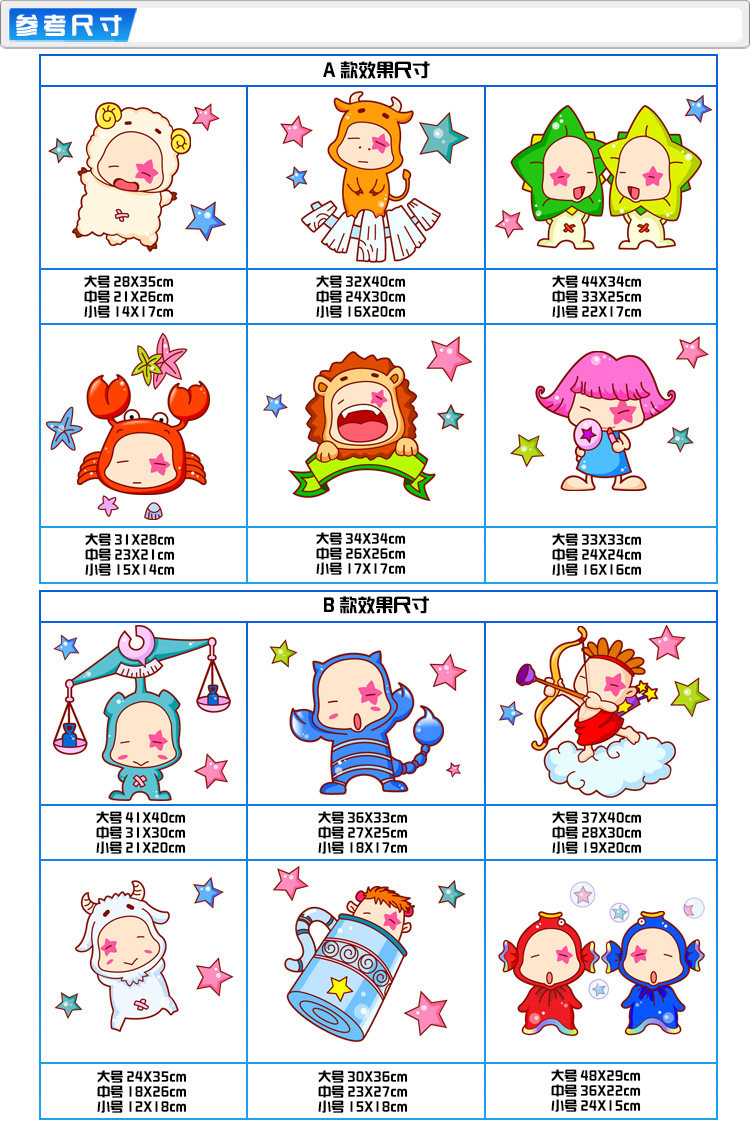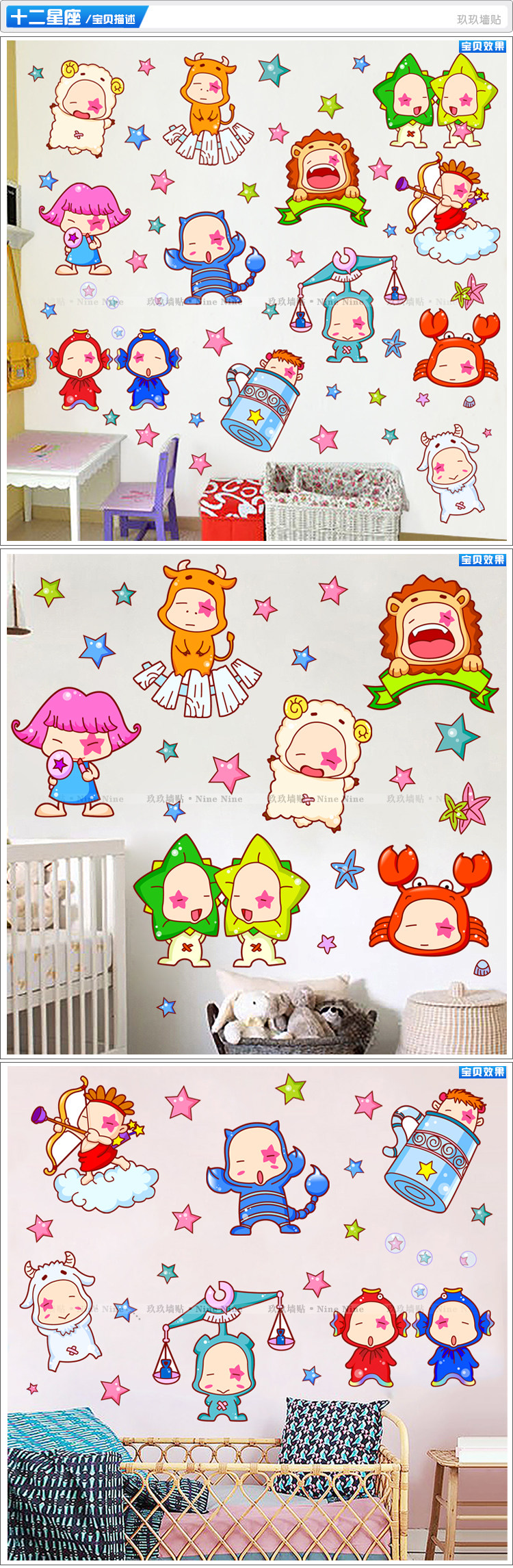 儿童娱乐城童装店幼儿园卡通墙贴十二星座白羊双子射手座贴纸贴画