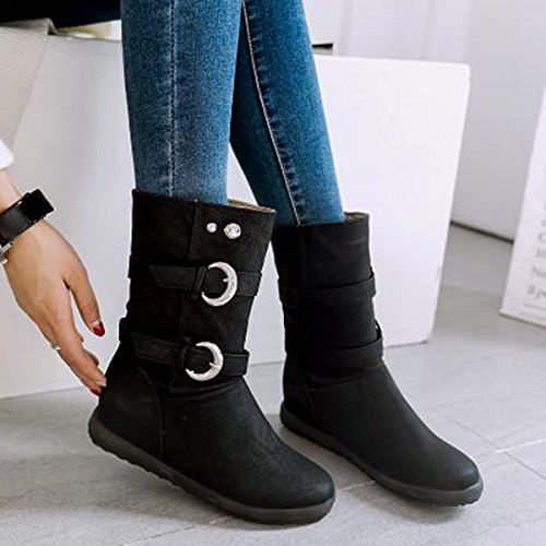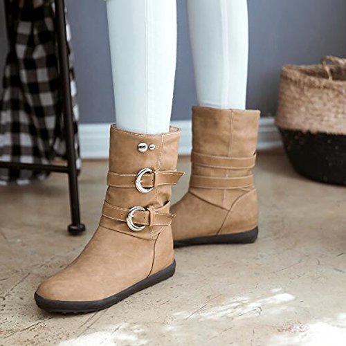 Mid-calf Boots Material:PU Leather Boots Clousure;Buckle Height;8.26" ;Top Round;11.8",Heel 0.39" Increased heel;0.59",Platform 0.59" Mid Calf Boots with Warm Fur Lined