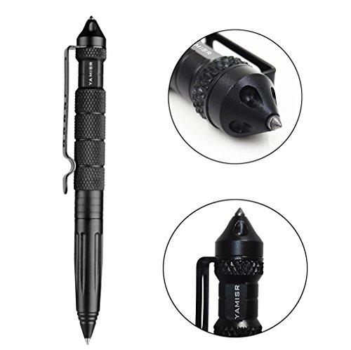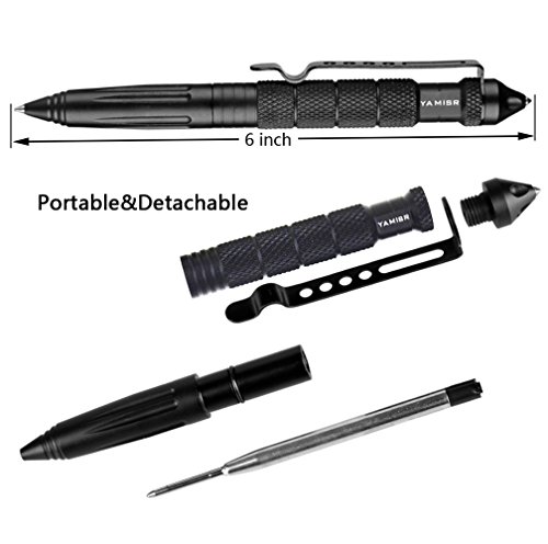 Tactical Pen,YAMISR Self Defense Pen, Emergency Glass Breaker, DNA Collector Aircraft Aluminum Survival Tool with Writing for Men,Women, Police and Military Gear Father's Day Gifts (Black)