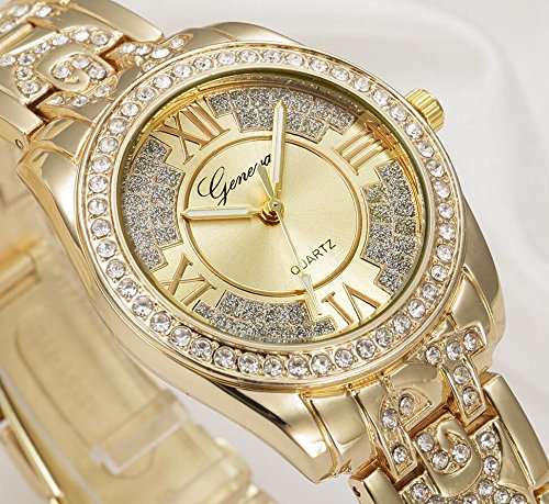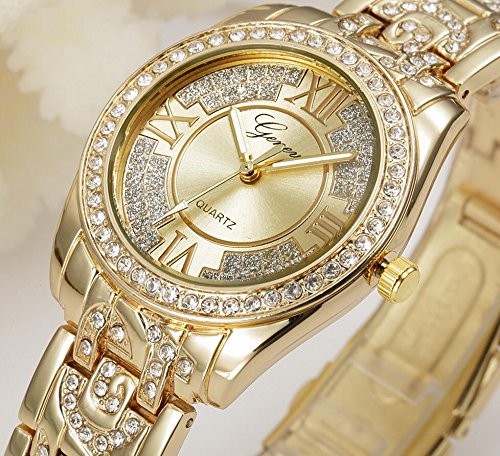 -. Feature : High quality and reasonable P.R.Ices.Stainless Steel Brand,new with tag.Best choice as a present for self,for brother,for friend,for dad,or for husband,etc / Gold Color use IP plating technology, luxury crystral Rhinestone dial. / Imported Japanese quartz movement,precise time display.Top quality steel material,wear comfortable. Diameter:4.0cm, band perimeter(inside closed):22cm / Daily life waterproof, but not for swimming or diving. / Feature:Quartz woman dress diamond watch, it is very beautiful when you wear it in your hand.