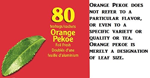 -. Binding : Misc. -. Feature : Orange Pekoe does not refer to a particular flavor, or even to a specific variety or quality or tea. Orange pekoe is merely a designation of leaf size. / Manufacturer will be updating their packaging of items. This item's packaging may begin arriving in a different or updated package but the contents will remain the same quality they have always been. / Nowadays, millions of cuppas are enjoyed around the world. / From early morning brews to afternoon tea, we'll take care of our unique Typhoo taste. -. Label : Typhoo -. Manufacturer : Typhoo -. PackageQuantity : 1 -. ProductGroup : Grocery -. ProductTypeName : GOURMET_FOOD -. Publisher : Typhoo -. Studio : Typhoo -. Title : Typhoo Tea Bags - 80 Pack