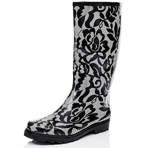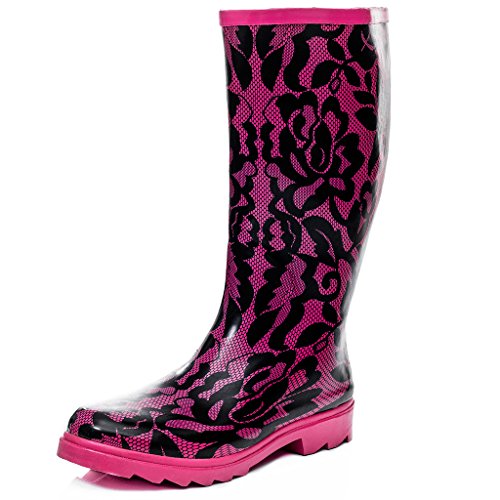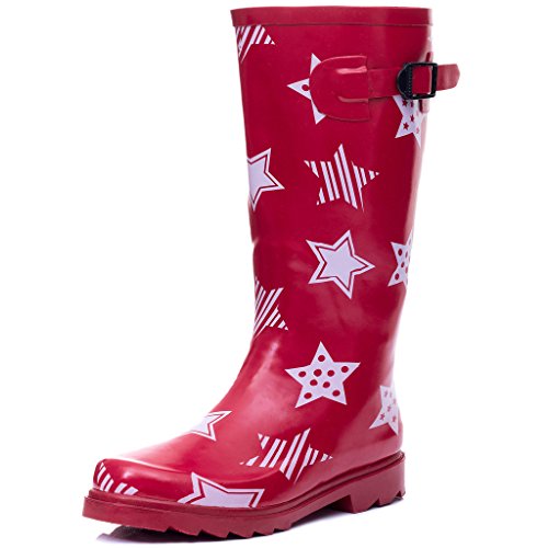 | SPYLOVEBUY MOANNA Women's Knee High Flat Welly Rain Boots |