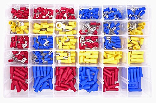 GekBot 480PCS 12-Size Assorted Insulated Electrical Wire Terminals Crimp Connectors Fork Ring Butt Spade Set