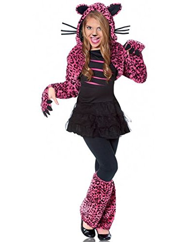 Pink and black leopard print shrug with hood WTH cat ears and paws and leg warmers
