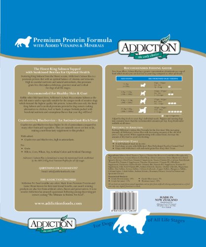 Featuring Pacific Salmon from the bluest oceans, Addiction's Salmon Bleu is a hypoallergenic diet with an optimal balance of essential nutrients. High in Omega 3 fatty acids and natural antioxidants, this premium grain-free diet with New Zealand king salmon makes a delicious, gourmet meal and is ideal for dogs of all life stages.