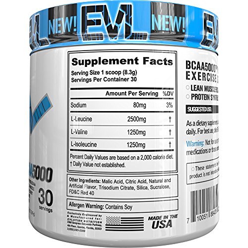 Evlution Nutrition BCAA5000 Powder (30 Servings, Cherry Limeade) 5 Grams of Premium BCAAs