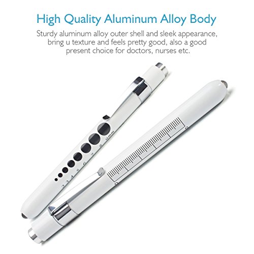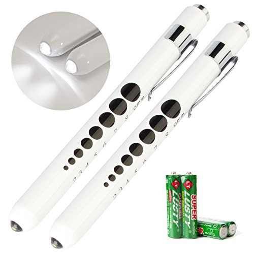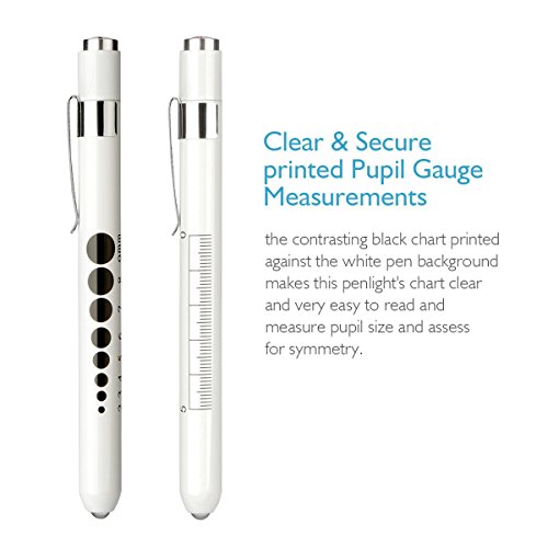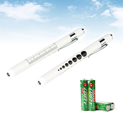 Opoway Nurse Penlight LED Medical Pen Light with Pupil Gauge Measurements for Nursing Students Doctors Stethoscope Medical Occasion with Durable Batteries free, White, 2 Piece