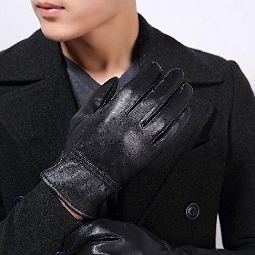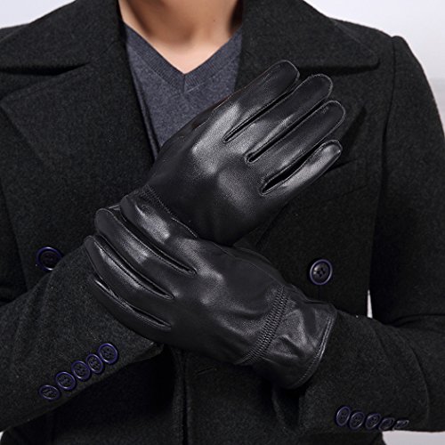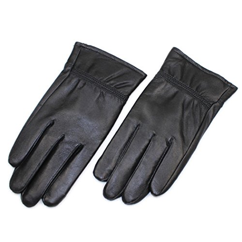 Note:Measure the hand you normally write with at its widest point,excluding the thumb. Our leather gloves are slim fit design. Gloves would be snug at first but leather will stretch. Made of real leather with warm and soft plush lining,offer a unique mix of practical design and directional style, keep your hand warm,and protect your hand when going outside in cold weather conditon.try this fashion warm gloves by HINY,enjoy your winter season. 0