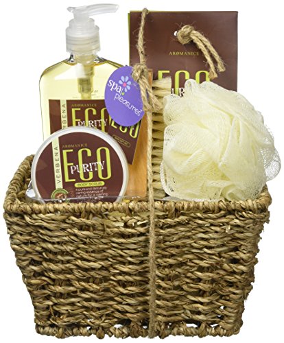 Soak in pure bliss with this deluxe verbena fragranced spa set. Inside the handsome woven basket youll discover relaxing shower gel, body scrub, and bath crystals, along with a pouf and pumice brush for the ultimate in refreshing relaxation.Feature