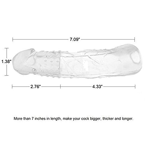 Color:Clear Silicone Penis Sleeve Cock Enlarger Extender Sleeve Condom Cock Sleeve Penis Enhancer Enlargement Features: - This condom extender is pretty snug when put on a penis of human or prosthetic. - Functioning like pleasure ticklers, the whiskers tease her pussy or her clit during doggy. - Completely covering your tip and your upper shaft, the cock sleeve fits snugly and securely. - The sleeve provides a nice boost to your girth as well as extra support to help you maintain your erection at its peak. James Love Store 100% Satisfaction Guaranteed Service - Any problems, please do NOT hesitate to contact us, we will try our best to meet your expectation. Specifications: - Material: Silicone - Length: 7.09"(Front solid part 2.76" Back hollow part 4.33") - Diameter: Outer: 1.38-1.57"; Inner: 1.18" - Weight: 4.37oz(124g) - Color: As the pictures shown Package include: 1 x Penis Extender Enlarger Sleeve Notice: 1) Pay attention to the health hygiene,use clean water or alcohol to disinfect 2) Forbidden to use hot water above 40 degrees in order to avoid burning the crystal sleeve 3) Wash it before and after each use with liquid, antibacterial soap and water. 4) Avoid leaving the product in direct sunlight and avoid exposure to high-temperatures. 0