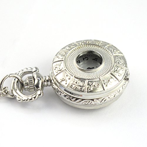 -. Title : YouYouPifa Fashion Silver Twelve Constellation Design Hollow Small Pocket Watch