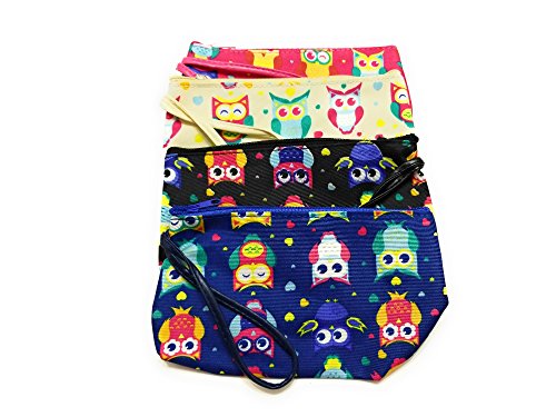 7" x 4" Colorful Owls Cosmetic Bag w/ Wrist Strap