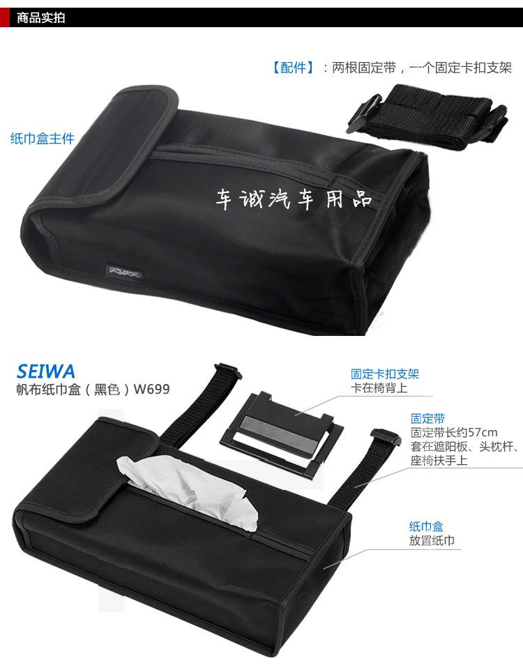 3, a variety of installation, use two straps with a product equipped with, and can be mounted on the sun visor on the front armrest, front head restraints, front seat body, so you can get a paper towel within reach, safe and convenience.