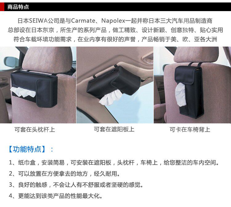 ◆ Product Name: Japan SEIWA Car Visor Tissue Box Cover car pumping tray sets
