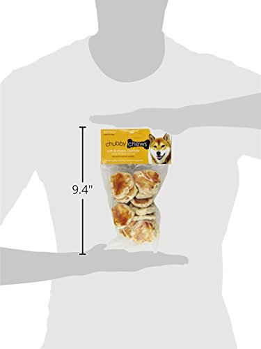 -. Title : Chubby Chews Soft and Chewy Rawhide Treats with Real Chicken on Top, 2-Inch Heart Shape, 6-Ounce Bag