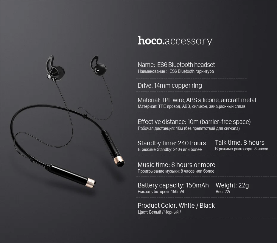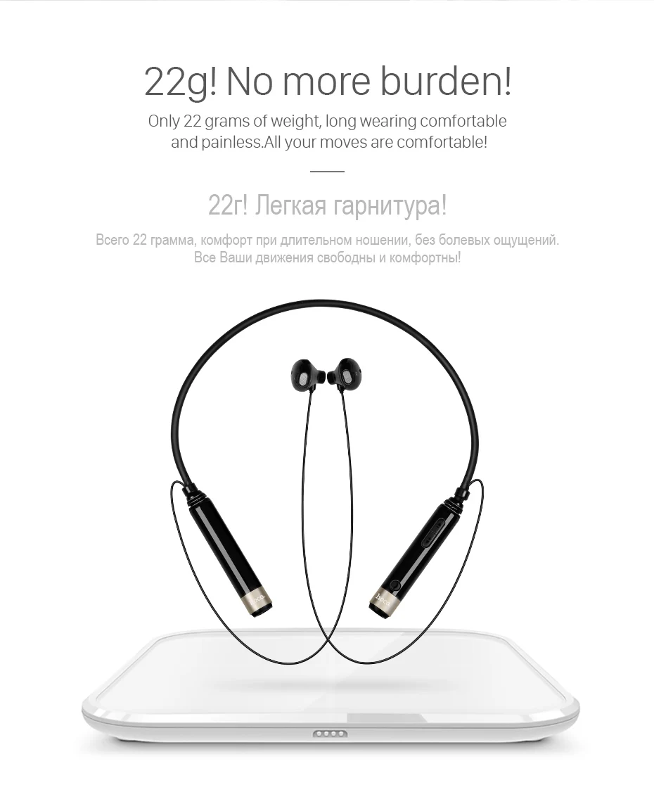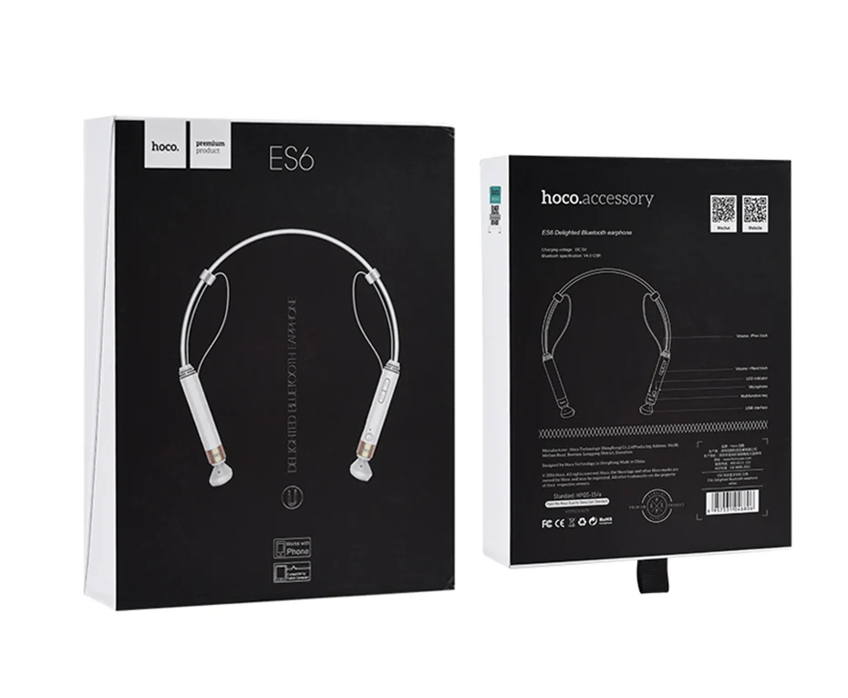 HOCO Anti-lost ES6 Bluetooth Earphone HD Sound Long Lasting Battery Music Headset for Smartphone Tablet Light Bluetooth 4.0