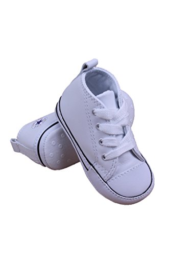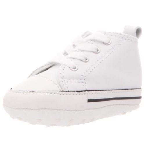 Converse Infant First Star - White Leather Converse run 1/2 size large. It is recommended to order down accordingly.