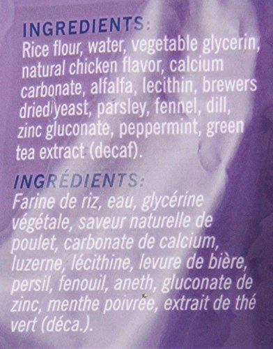 -. Feature : Peppermint, parsley, fennel, dill and chlorophyll freshen breath / Mechanical action plus Tricalcium Phosphate removes plaque and tartar / Fennel and dill aid digestion and help alleviate gas / Peppermint soothes the stomach / Chlorophyll cleanses the blood