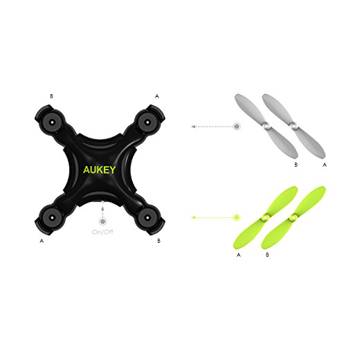 Studio : AUKEY Publisher : AUKEY Binding : Toy Product Description Mini Drone Replacement Blades Replacement Blades are designed for AUKEY Mini Drone UA-P01 and UA-P01W delivering stable flying experience with easy flip, throttle, and spin controls. To setup, attach the A propellers to the front left and rear right rotors, and the B propellers to the front right and rear left rotors.
