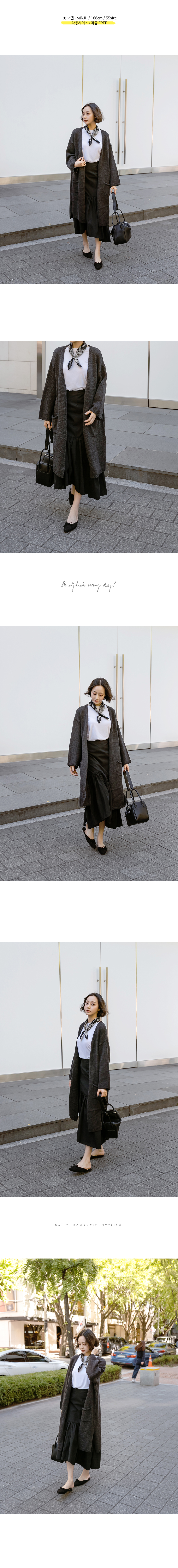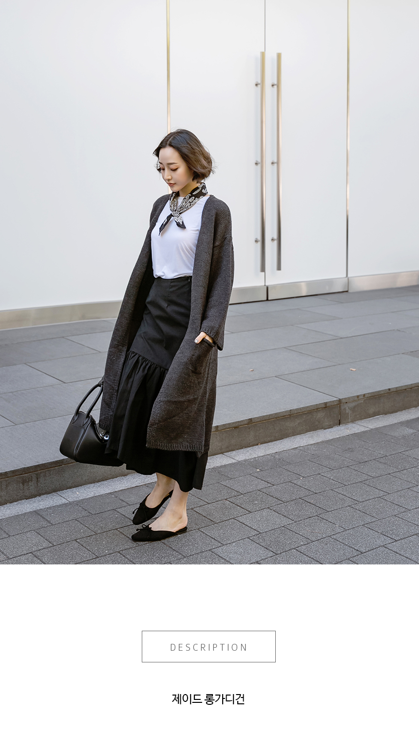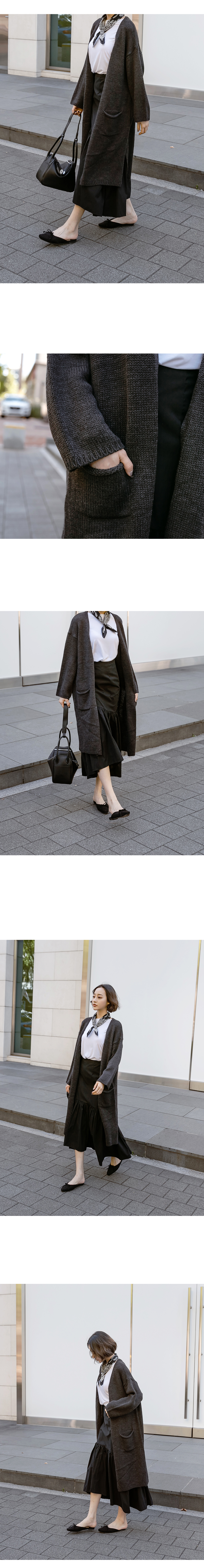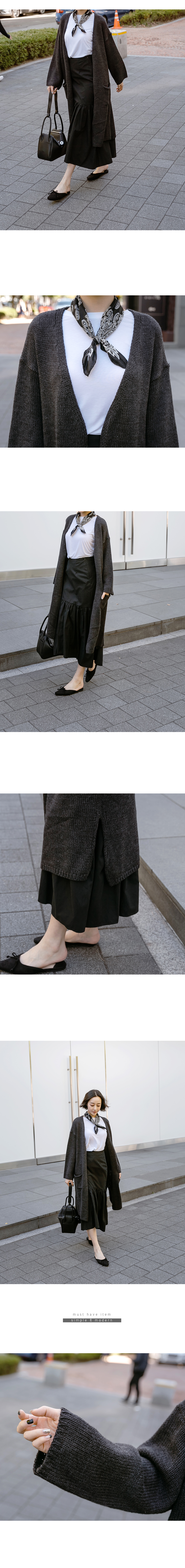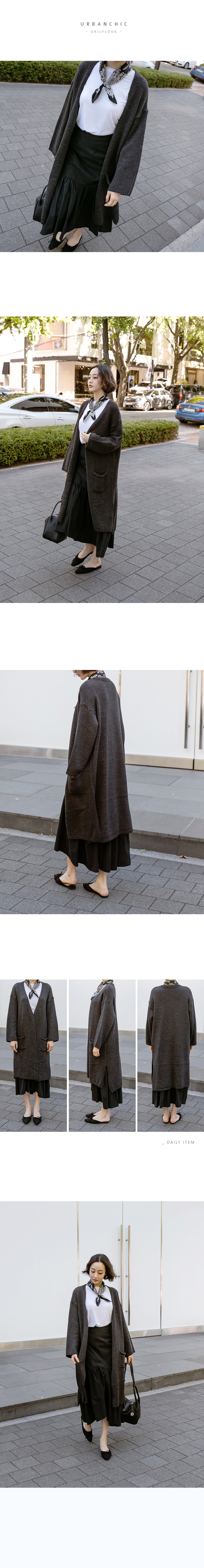 시크한 무드의 오버핏 롱 니트 가디건으로