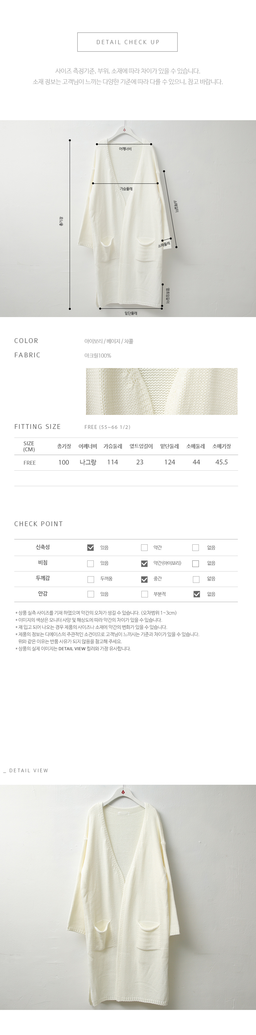 아크릴 원사 특유의 가볍고 매트한 질감이