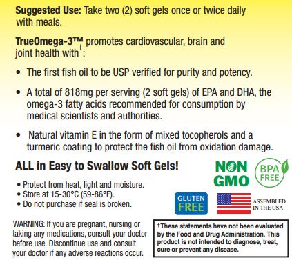 TrueOmega-3TM is made with the MEG-3TM brand of fish oil which was the first and remains the only brand to obtain certification for purity and potency by the U.S. Pharmacopeia (USP) for several of its fish oils.