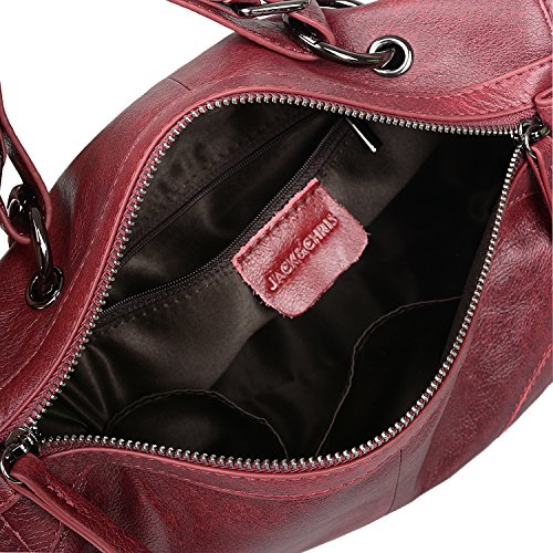 Material: Jack&Chris handbag, WB514, choosing top layer leather, owing characteristics of irregular wrinkles and chic texture on surface,soft touch and wear-resisting,tenacity .This is natural leather texture formation also the characteristics of genuine leather which we all have.