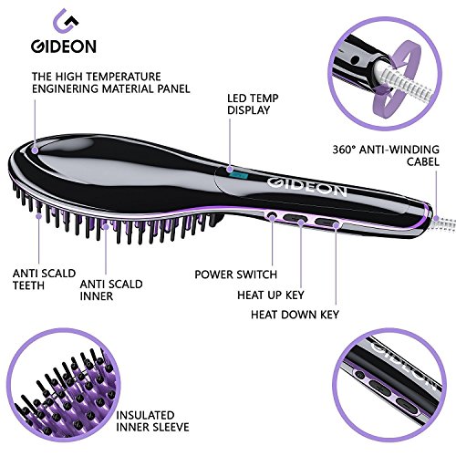 Gideon Professional Heated Hair Brush Straightener - Innovative Hair Straightener / Achieve Salon Quality Straight Hair in Minutes [UPGRADED VERSION]