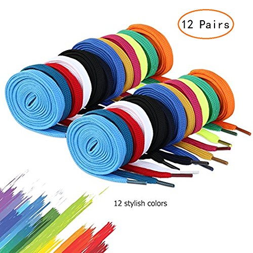 -. Title : 【セット12Pairs】靴ひも ヒラヒモ 125cm 全12色 【織物 +ゴム】 靴 スニーカー 登山靴 子供から大人まで