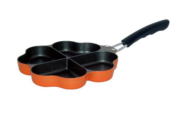| ハート型の仕切りで使いやすい四つ葉のクローバー型フライパン。 |