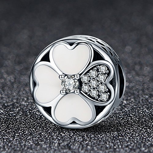 -. Title : 925 Sterling Silver Lucky Clover Heart Shape White Enamel Love Bead Charm with AAA CZ Charms fit Bracelet