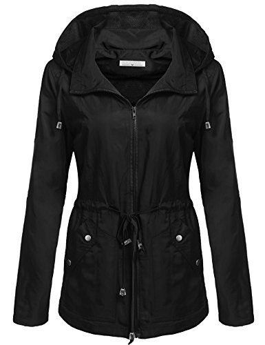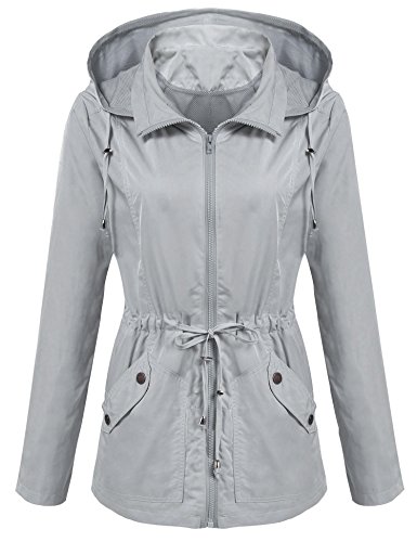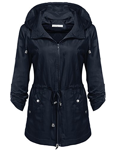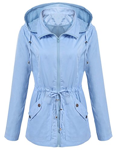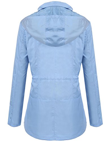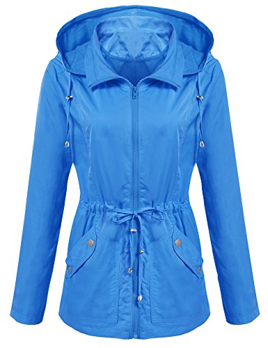 Womens Windbreaker Waterproof Long Sleeve Hooded Rain Jacket with Drawstring