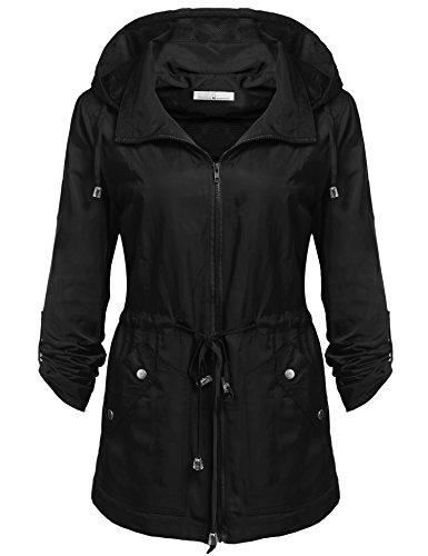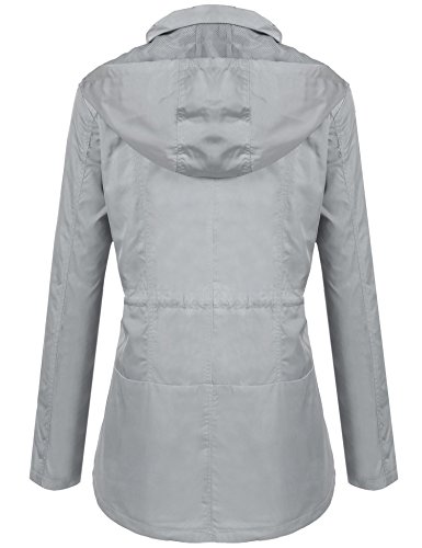 Women Lightweight Waterproof Windbreaker Long Rain Hooded Jacket with Drawstring