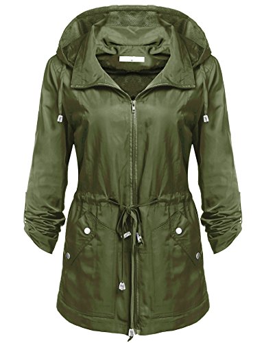 Womens Raincoat Outdoor Hooded Packable and Lightweight Zipper Jacket Coat