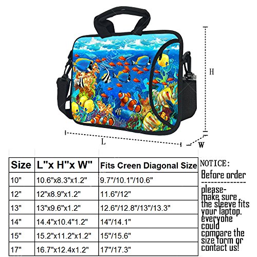 -. Binding : Personal Computers -. Brand : Wondertify -. Feature : Designed by a simple and fashion way to protect your MacBook, Laptop, Notebook Ultrabook computer or iPad. / Made of 100% neoprene, Lightweight,Durable and water resistant. / High quality printing on both side of the bag. / Slim and lightweight design allows you to carry the case by itself or in a bag. / There have seven sizes to choose: 10 inch, 11 inch,12 inch,13-14 inch, and 15 inch,17 inch -. Label : Wondertify -. Manufacturer : Wondertify -. Model : IO-P2638 -. MPN : IO-P2638 -. PartNumber : IO-P2638 -. ProductGroup : PC Accessory -. ProductTypeName : CARRYING_CASE_OR_BAG -. Publisher : Wondertify -. Size : 10-10.1 Inch -. Studio : Wondertify -. Title : Wondertify 10-10.1 Inch Waterproof Neoprene Laptop Shoulder Bag Briefcase - Sea World Protective Bag Carrying Case for iPad Air/iPad Pro/iPad mini 2/3/4/Surface RT/Pro 2