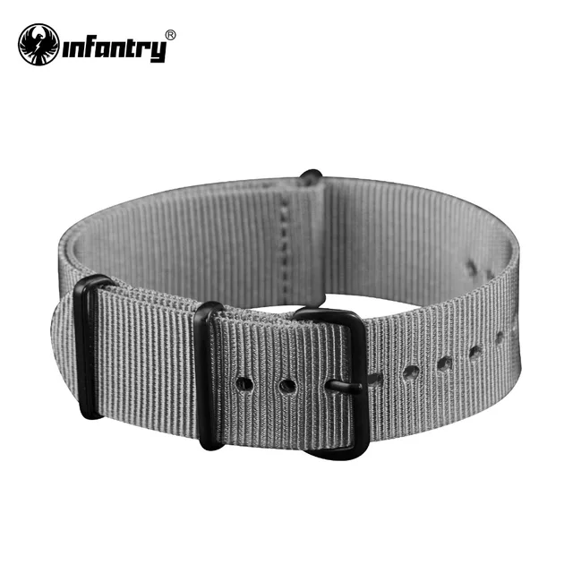 보병 22 미리메터 시계 스트랩 그레이 캔버스 강한 줄 부드러운 밴드 손목 남성 팔찌 방수