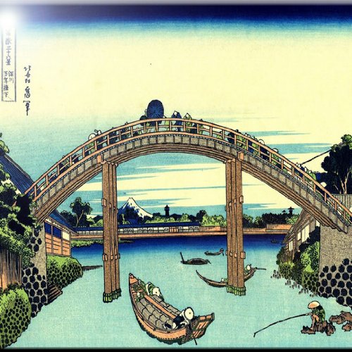 Rikki Knight RK-8intilec-3227 8" X 8" Katsushika Hokusai Art Fuji Through Mannen Bridge Design Ceramic Art Tile