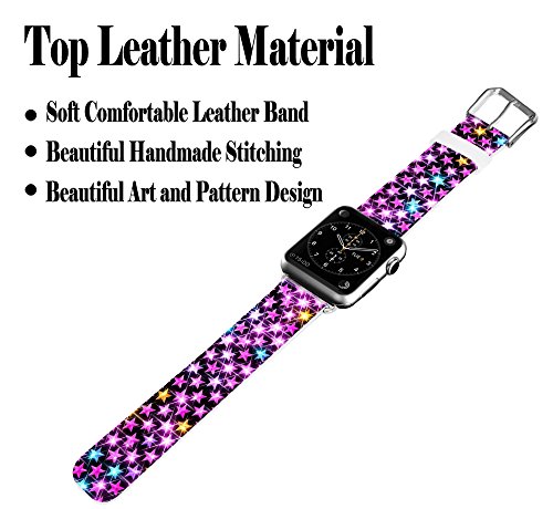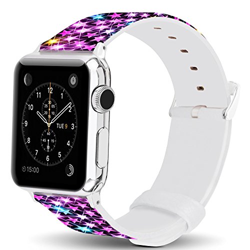 Apple Watch Band 42mm,Jolook Soft Leather Sport Style Replacement iWatch Strap for Apple Watch Series 1 Series 2 42mm Models - Shining Colorful Stars