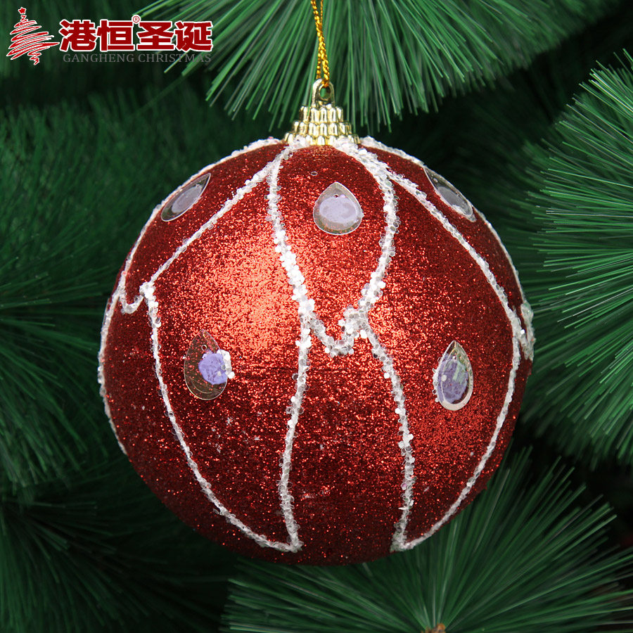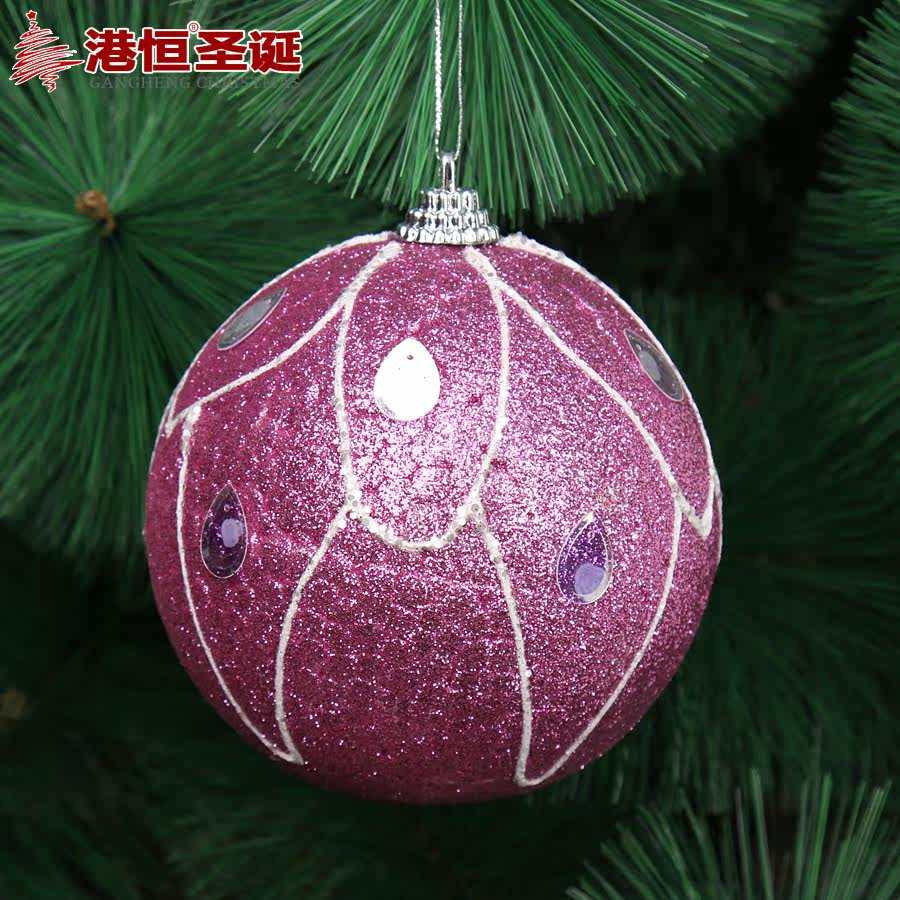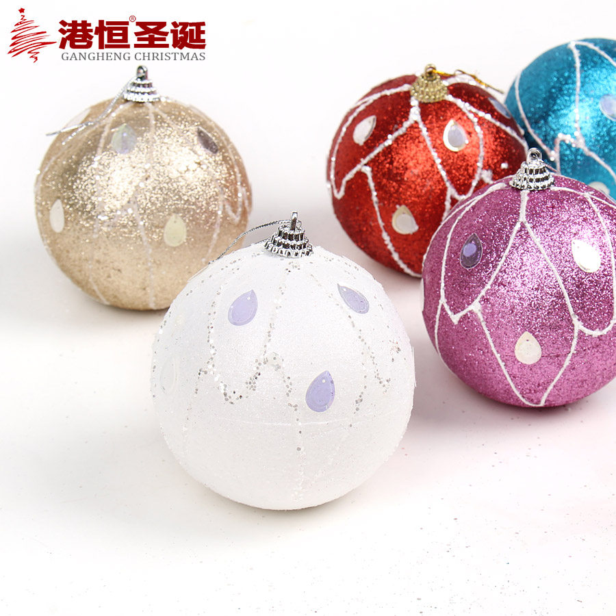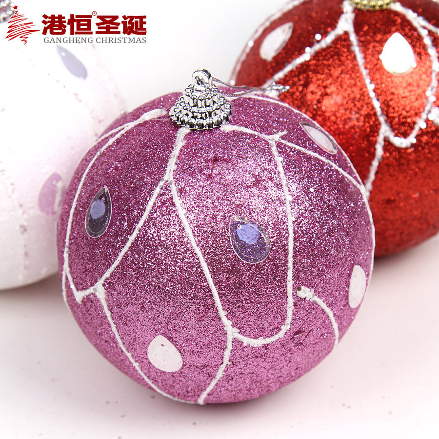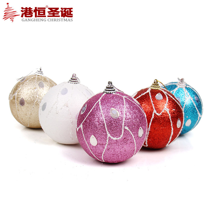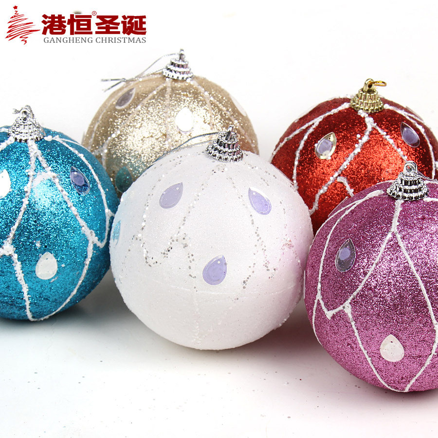港恒圣诞10cm彩绘圣诞球 泡沫粘饰圣诞球彩球闪粉圣诞装饰用品