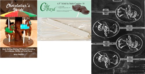 Cybrtrayd 45St50Bk-C037 'Oval Angel Lolly' Christmas Chocolate Candy Mold with 50 4.5-Inch Lollipop Sticks and Chocolatier's Guide